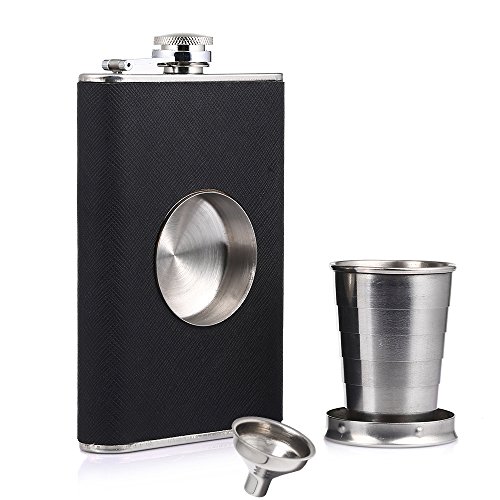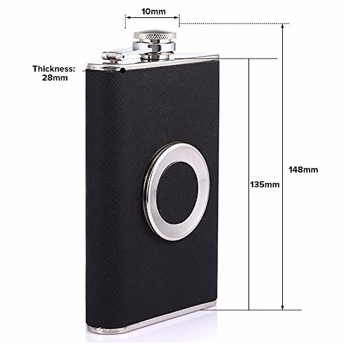 -. Feature : Five section folding cup is included / Small volume, easy to carry. Capacity: 8oz / It has exquisite workmanship and beautiful appearance / Made of stainless steel material, firm and durable. The surface of hip flask is surrounded by PU leather material / An ideal portable container for store wine. Suitable for filling with white wine, whiskey, non acid liquid, etc