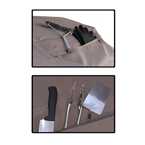 - Feature : Different Measurements Available / Compatible with Gas, Charcoal, Electric, Propane and Natural Grills. / Click-close straps for secure placement. Air Vents and zippered pocket. / Water repellent PVC Will resist any weather conditions. / KHOMO GEAR� is a registered trademark and best-seller of BBQ Grill Covers.