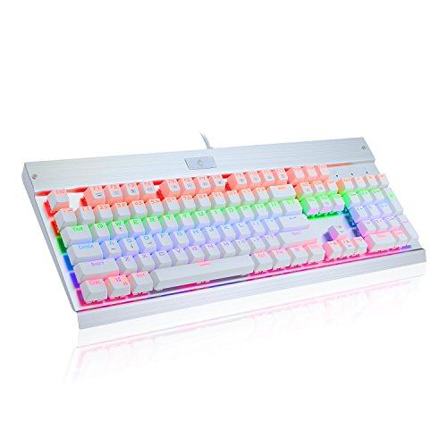 GAMING KEYBOARD; 104 Key Mechanical Gaming Keyboard with Custom Mechanical Switches-blue switch designed for longevity with greater durability and responsiveness. Fast mechanical keys with medium resistance, precise actuation, audible click sound, and tactile bump feedback.