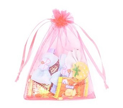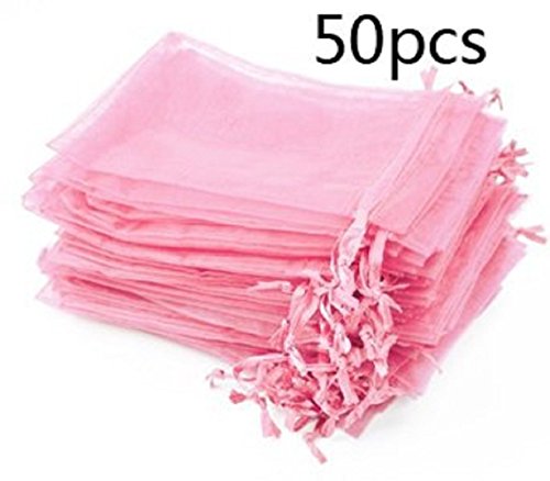 Pack of 50 Pink color Organza Drawstring Gift Bag Pouch Wrap for Party/Game/Wedding (7x5") (Pink) by Aketek