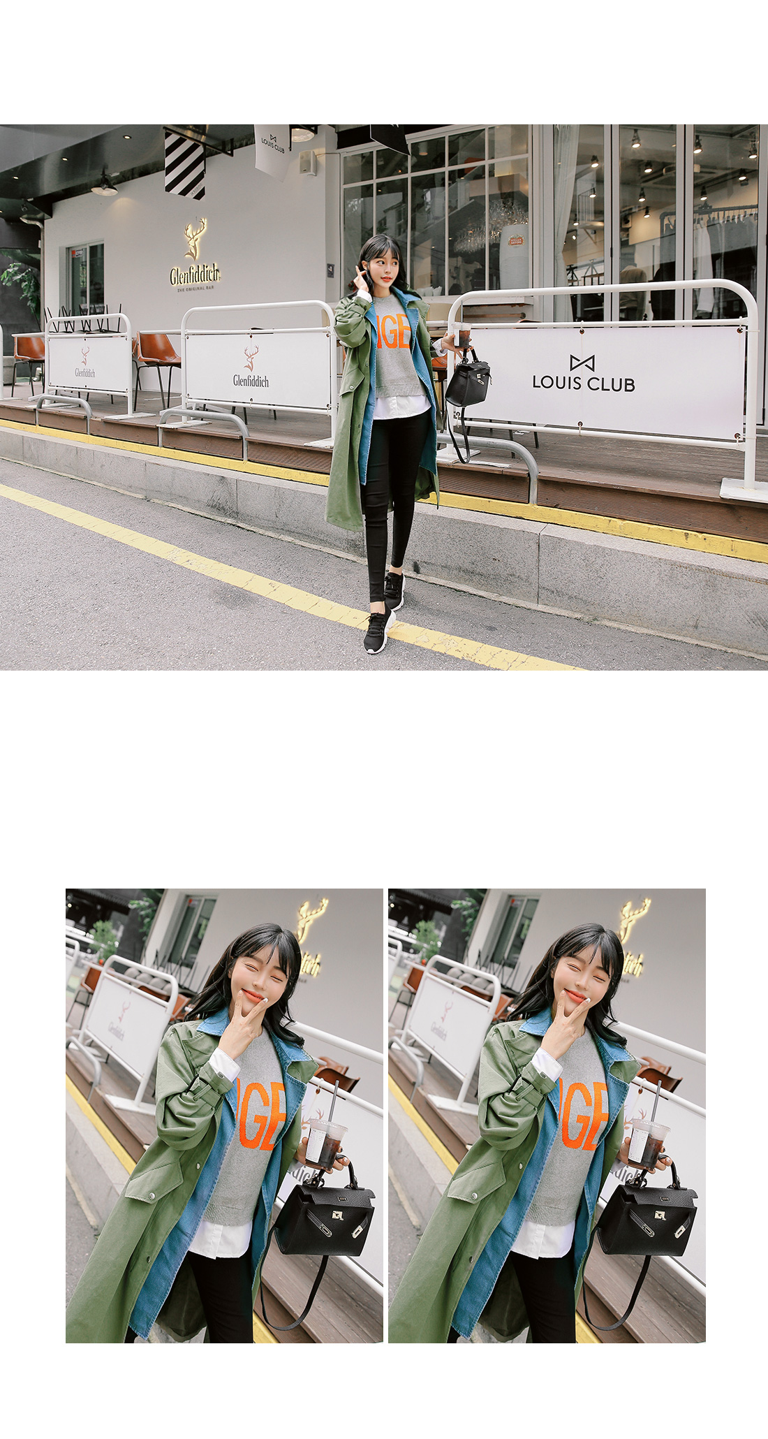 레이어드되어 있는 데님 카라 디테일이 돋보이며,