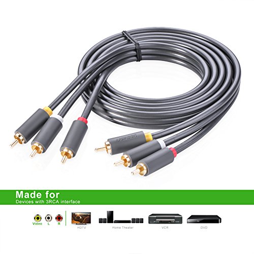 UGREEN 3RCA Male to 3RCA Male Stereo Audio Video Cable RG59 Gold Plated for Connecting Your VCR DVD