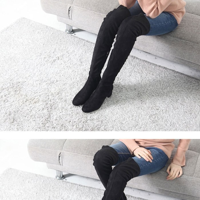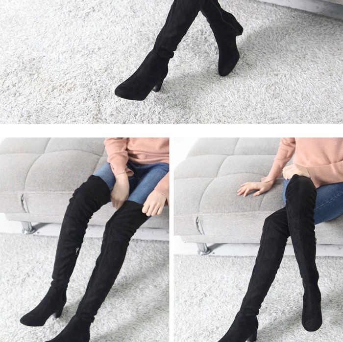 商品名:ロングブーツ レディース ニーハイブーツ チャンキーヒール 太ヒール スエード調 2017 秋 冬 ファッション 靴 婦人靴