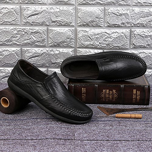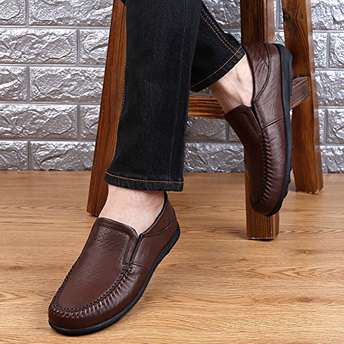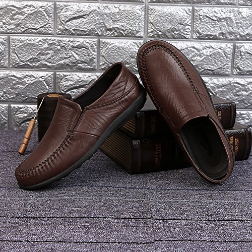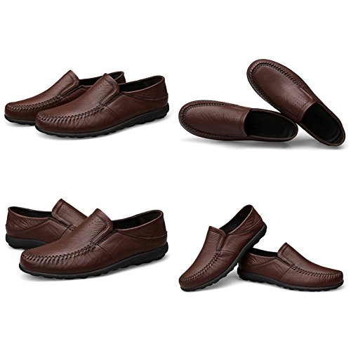 -. Title : Coolloog Men Moccasin Slippers Cowhide Leather Upper Fashion Style Driving Shoes Rubber Sole House Shoes