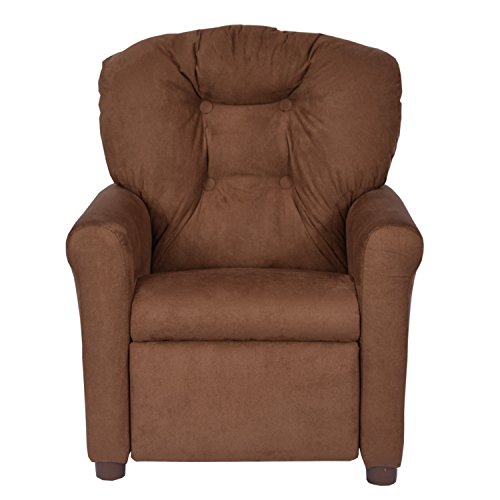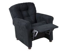 The kids get the comfort they want and you get an attractive piece of furniture that won't mar your carefully designed living room. In short, everyone wins with the Ace Bayou Juvenile Recliner - Black. Upholstered in a vibrantly colored, soft microfiber fabric, this recliner really does recline to keep them comfortable while they take in everything from Sesame Street to video games. It has a heavily tufted backrest for added comfort. This recliner is designed for children ages 3 to 12.Feature