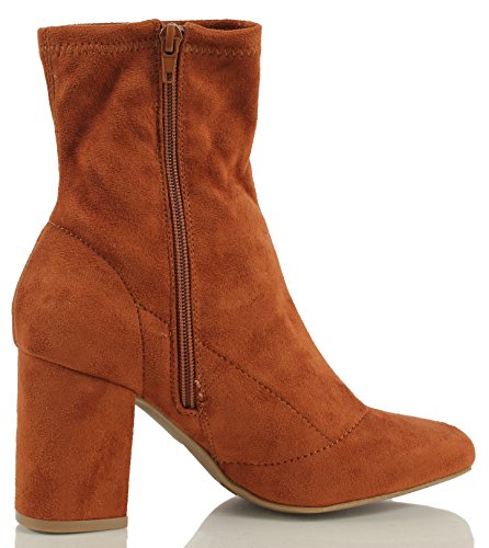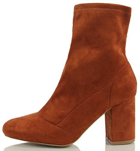 Product DescriptionChic pull on ankle bootie featuring closed almond toe, faux suede, chunky heel approx 3 1/8" ( size 7). Shaft height including heel 9 1/2" ( size 7)0