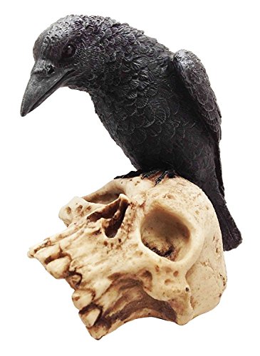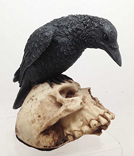 Dark Crow Raven Hovering on Prey Skull Skeleton Resin Figurine Sculpture