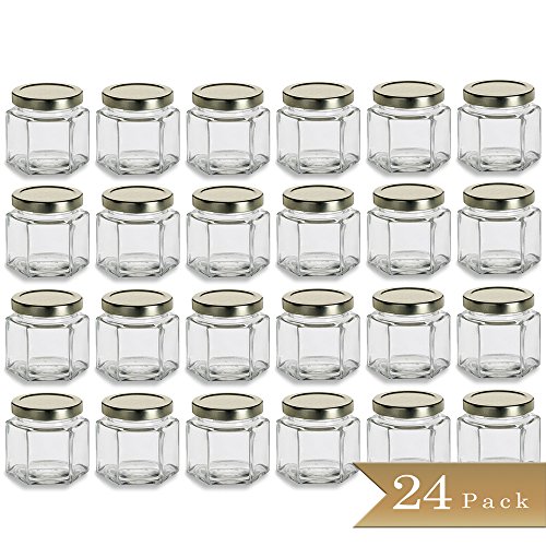 [Product Information]- 24 Large Glass Hexagon Jars with Gold Lids - 4 ounce (120ml)