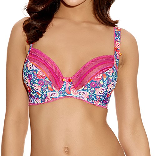 Balcony shape with great uplift and support Soft handle printed simplex Bold two-tone lace at top of cups with satin bow detail Printed straps Brand : Freya Item model num : AA1791 EAN : 0886279813059