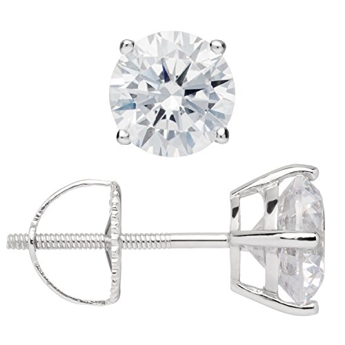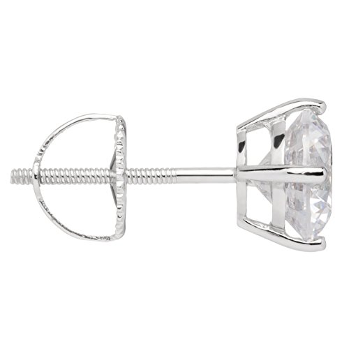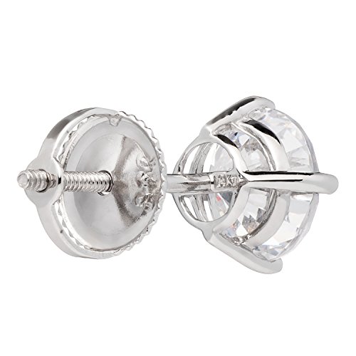 A gorgeous pair of stud earrings featuring two brilliant round cut cubic zirconia (CZ) stones totaling 1.8 carats (.90 carat each earring) measuring 6.5mm diameter. Top Quality Grade AAAAA CZs look just like real diamonds that cost thousands of dollars. They are professionally set in a heavy basket setting with secure screw-back fastenings, all crafted from solid 14K white gold, with no other metals mixed (not plated or filled). This beautiful pair of earrings is elegantly presented in a deluxe black velvet box. They will make a perfect gift for a loved one, or for yourself!