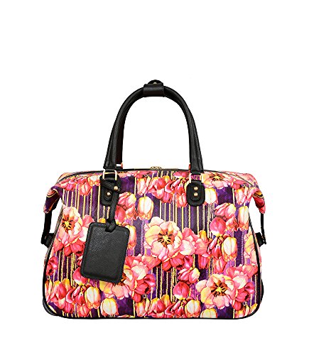 Studio : Mellow World Publisher : Mellow World Binding : Apparel Product Description Travel overnight or pack for a weekend getaway with this fabulous feminine luggage tote from Mellow World. The Mellow World meadow features a colorful floral pattern that adds a feminine touch to this durable rolling duffle. 0