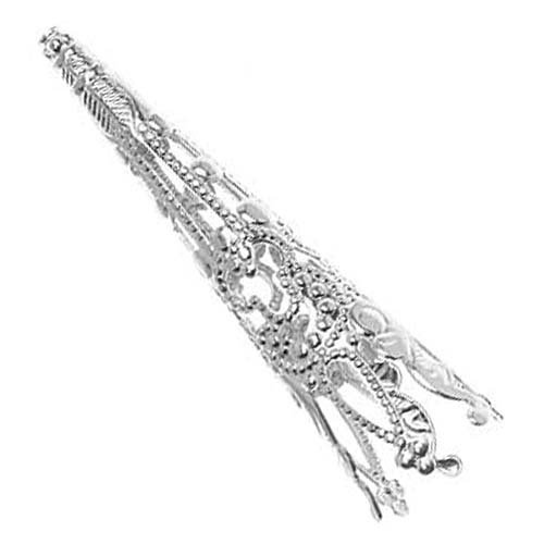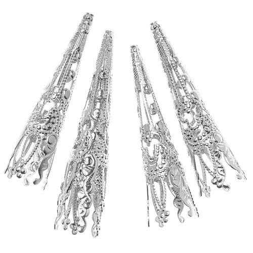 Beadaholique Long Filigree Cone Beads, 40mm, Bright Silver Plated