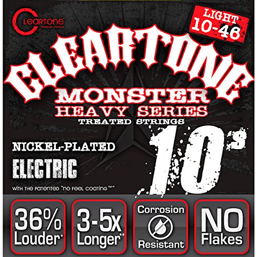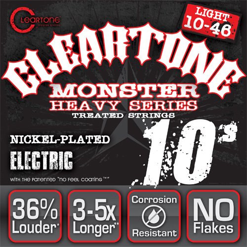 Studio : Cleartone Publisher : Cleartone Product Description Cleartone Strings feature an award-winning patented treatment and coating that is designed to keep your strings sounding fresh, 3-5 times longer than uncoated strings. With the thinnest guitar string coating in the industry, the nickel-plated Monster Black Series Cleartone Strings will last for a long time and keep your sound intact. 0