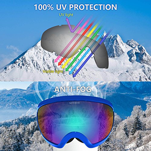 MOTOEYE Ski Goggles for Men Women Unisex Snow Goggles for Men, Women Youth that can be worn over prescription glasses. Designed with performance and versatility in mind.