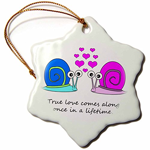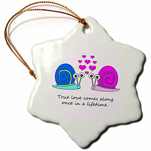 Janna Salak Designs True Love Comes Along Once in a Lifetime Cute Snail Design Snowflake Porcelain Ornament, 3-Inch
