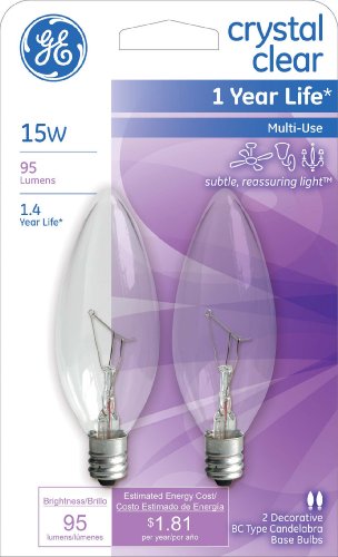 GE Lighting Crystal Clear 74974 15-Watt, 95-Lumen Blunt Tip Light Bulb with Candelabra Base, 10-Pack