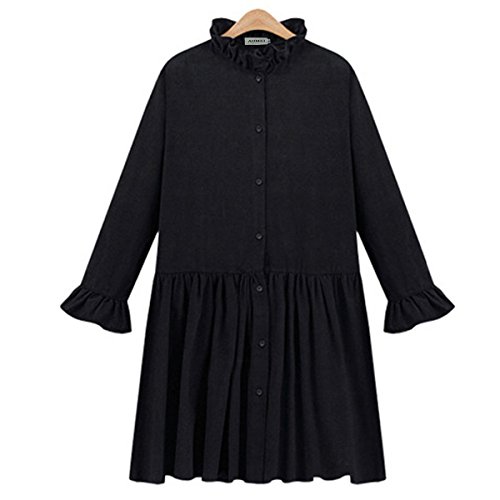 -. Title : AOMEIプラスサイズプリーツ冬のドレスロングスリーブフリルネックラインソリッドミニドレスレディースドレス