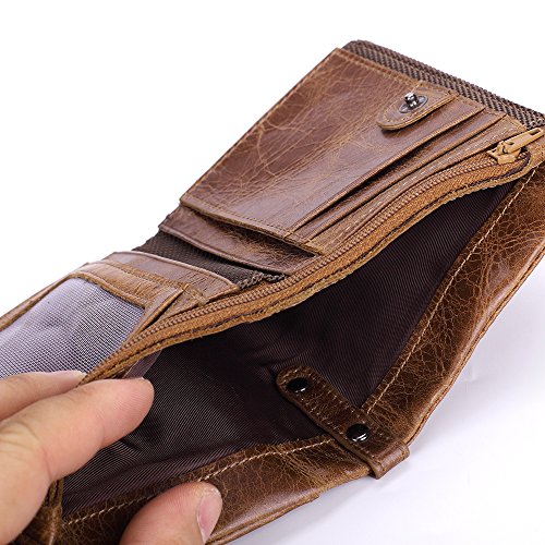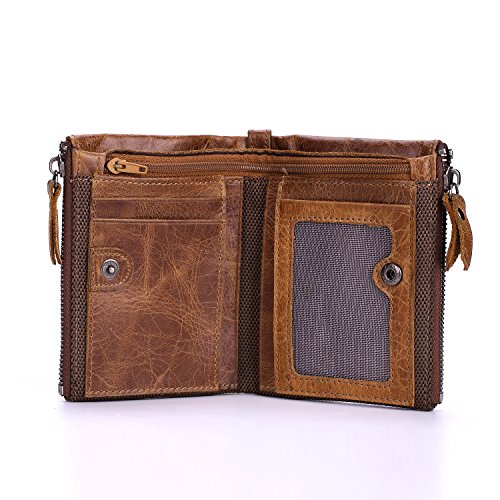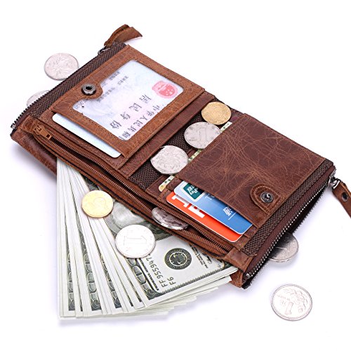 Binding : Apparel Product Description Product description [Specifications] Dimension: 3.74 x 4.72 x 1.18 inches (L x H x W) Material:leather Wight:3.17 Ounce [Simple maintenance] -USE a colorless care cleaner or a leather cleaner, apply it on a clean cloth and gently wipe it on the leather. -After cleaning, place ventilation shade don't put under the sun, in case of high temperature broken your bag. -DO NOT use alcohol, turpentine or other minerals to wipe the leather. -DO NOT put in a moist environment to avoid mold, ordinary mold can be wiped with a towel. -DO NOT touch water and oil,rub the water with a clean dry towel immediately.Do not use a hair dryer on it. Instead, use thick microfiber hand towel and place your bag to air dry. [Warm tips] --Due to different producing batches,there may be have deviation of 1-3 cm for item. --Colors on your computer monitor may differ slightly from actual product colors depending on your monitor settings. --Scratches on the surface of the leather is oil wax discoloration effect not man-made friction or poor quality of leather.If you want to remove the scratches,you can apply some horned oil to the scratches then rub by hand gently.When the horned oil is infiltrated inside the leather,the scratches will recover. [Package contents] 1 x leather wallet [100% Money Back Guarantee] -If you have any problem with your wallet, please contact us for free. We will solve your problem and provide you a satisfied answer once we receive your message. -Absolute we support 100% money back. 0