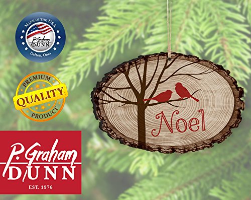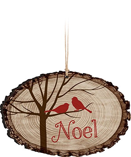 Noel Tree Birds Rustic Bark Look Wood Christmas Ornament