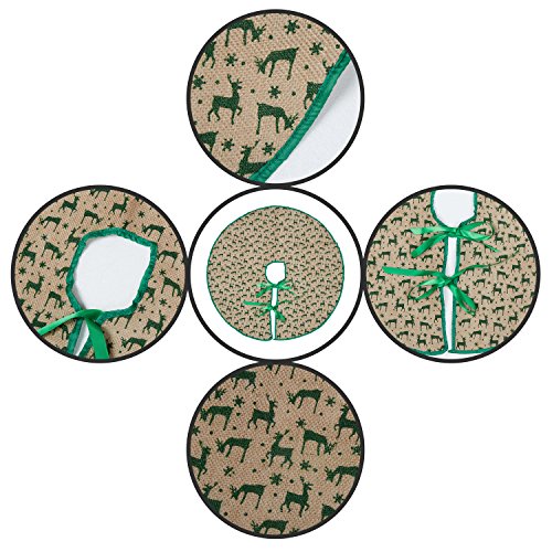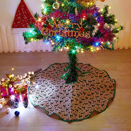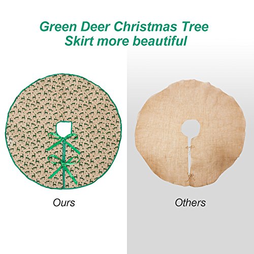 Marry Acting 30" Burlap Christmas Tree Skirt Green Deers with Trim, Tree Mat for Xmas Party Home Decoration