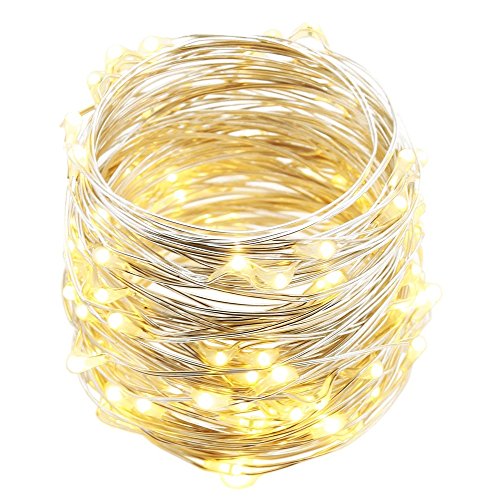 33ft 100 LED String Lights, AA Battery Powered Rope Lights for Bedroom, Patio, Garden, Parties, Christmas, Camping, Wedding, Decorative (Warm White)