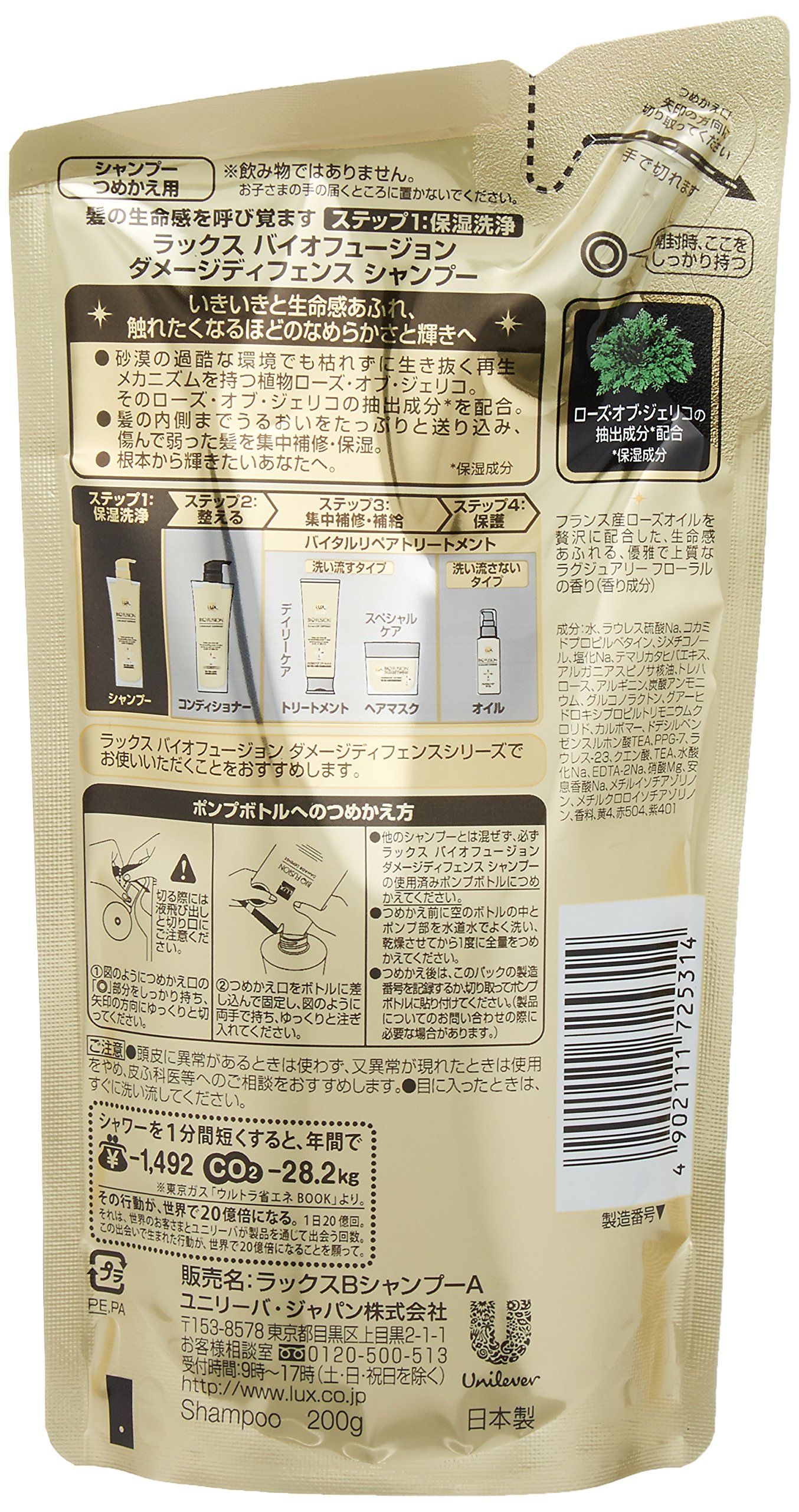 Unilever Japan LUX BIO FUSION | Shampoo | Damage Defense Shampoo Refill 200g (Japan Import)