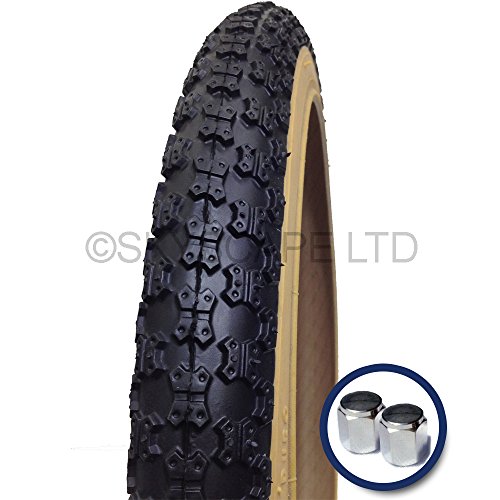 -. Title : BMX Tire (Bicycle / Cycle Tire) 20" x 1.75 - Compe 3 Tread Pattern - Black tread with Gumwall color side wall + FREE Shipping + FREE Upgraded Skyscape Metal Valve Caps (Worth $4.99)