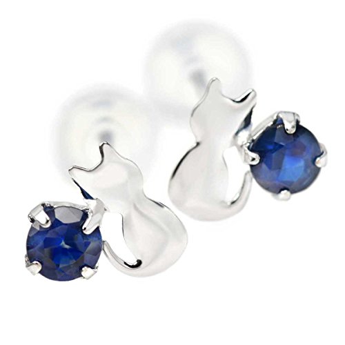 -. Title : K10 ホワイトゴールド 猫 シルエット 両耳用 キャット ネコ ピアス スタッド ピアス 雑貨 9月 誕生石 サファイア