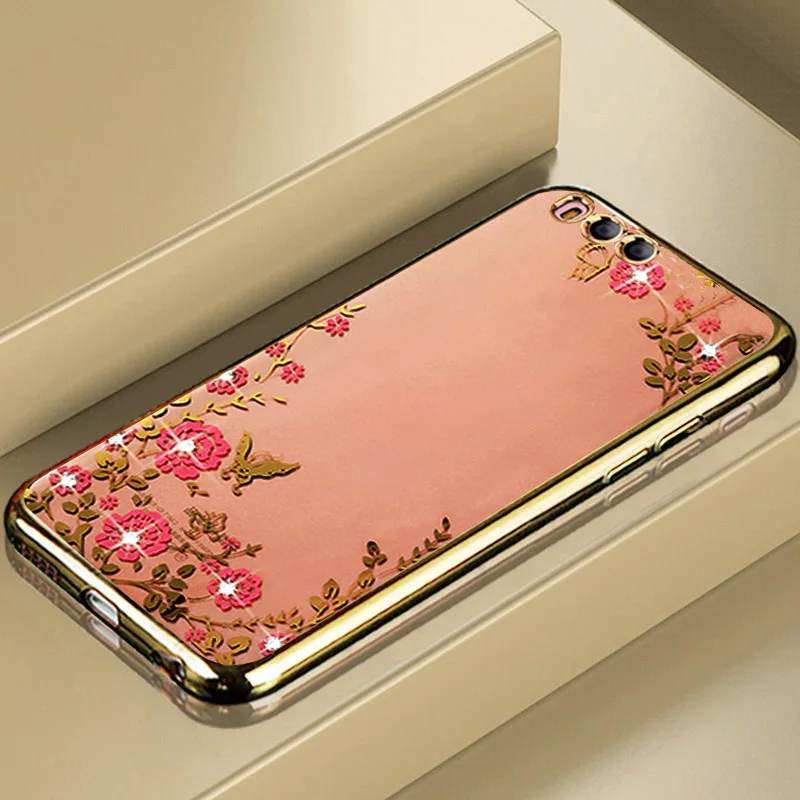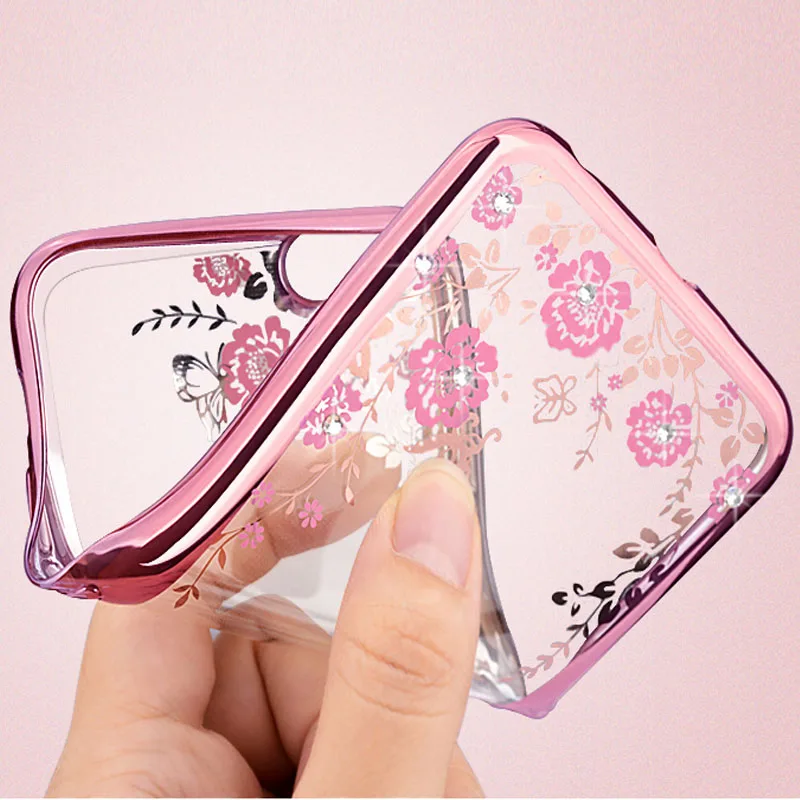 Feature 1:Rhinestones Clear Transparent Soft TPU Plating Case