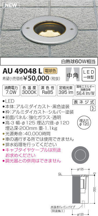 ●高-3 幅-φ125 埋込穴径-φ120 埋込深-200mm 重-1.1kg