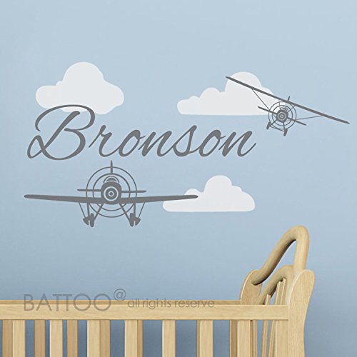 -. Title : BATTOO Personalized Boy Name Wall Decal Airplane Boys Name Decals Nursery Decor Plane Wall Decal Name Decal Boys Room Decor Biplane Sticker