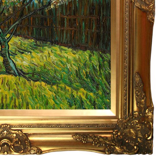 20-Inch by 24-Inch Oil Painting On Canvas Hand painted oil reproduction of a famous Van Gogh painting in an artists interpretation, Pink Peach Tree, 1888. Today it has been carefully recreated detail by detail, color by color to near perfection. Vincent Van Gogh's restless spirit and depressive mental state fired his artistic work with great joy and, sadly, equally great despair. Known as a prolific Post-Impressionist, he produced many paintings that were heavily biographical. This work of art has the same emotions and beauty as the original. Why not grace your home with this reproduced masterpiece? It is sure to bring many admirers. Frame Description: Victorian Gold Frame - Gold FinishFeature