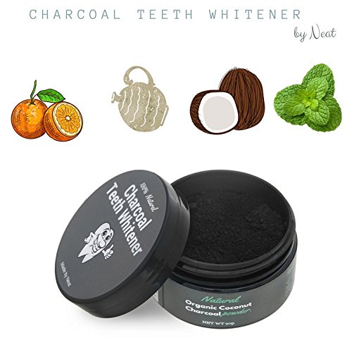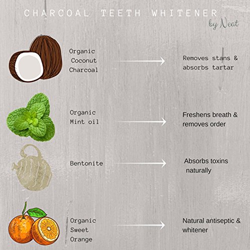 Charcoal Teeth Whitener by Neat- Natural Teeth Whitener with Coconut Activated Charcoal Powder- Natural Solution to Whitening toothpaste, strips & gels