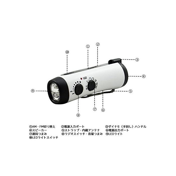원본상품명:RAYWILL(レイウィル)ラジオライト LED中電 充電式ライトラジオ FM AM 非常用ライト LED5 防災ラジオ 手回し充電 USB充電 携電話充電 緊急策 震災 津波 停電 日本語