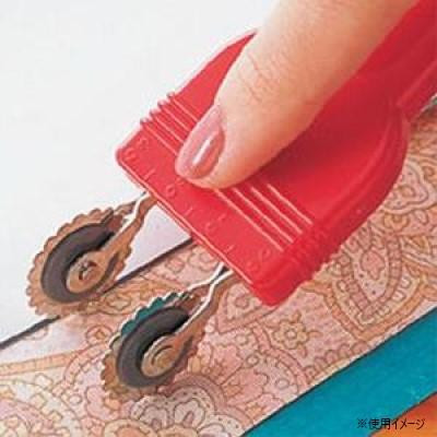 型紙を布地に写す時「縫う線」と「切る線」を同時に引くことができます。ギザ歯とソフト歯を差し替えてお使いください。