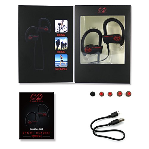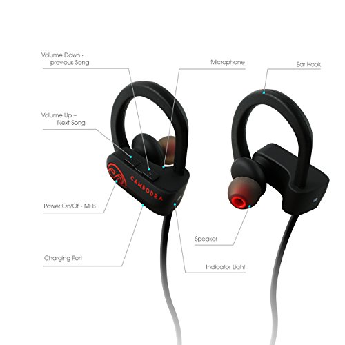 Wireless Headphones, Comfortable Sports Earphones w/ Mic, IPX7 Waterproof, Micro Usb cable, HD Stereo, Heavy Bass,Perfect Fit in Ear Perfect for Gym, Up to 8 Hours Talk Time by Cambodra