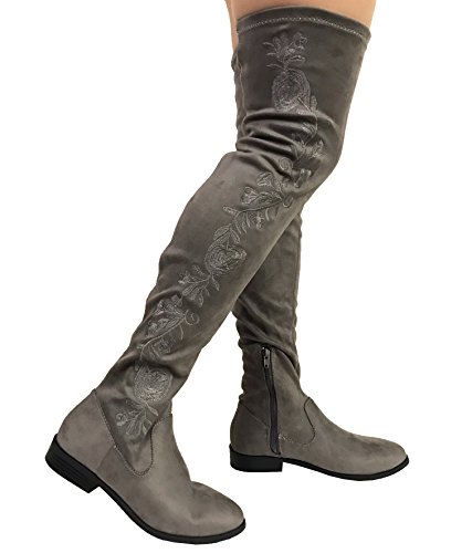 Product DescriptionNEW! City Classified Women's Over-The-Knee Floral Embroidered Thigh High Low Heel Boots0