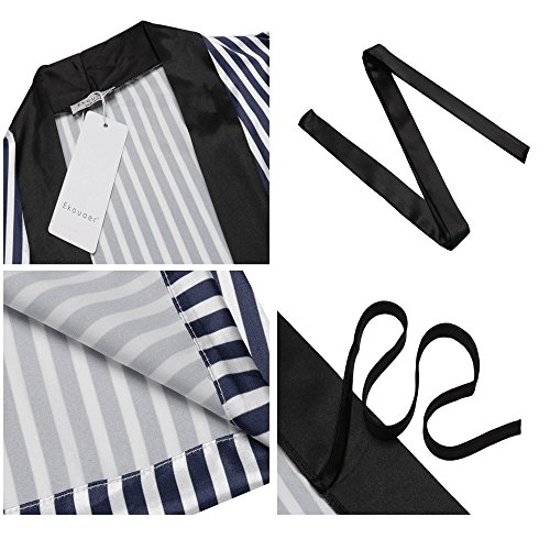 Ekouaer Women's Lace Trim Short Kimono Robe Seafolly Stripe Printed Sleepwear Nightgown Champlain Color Large