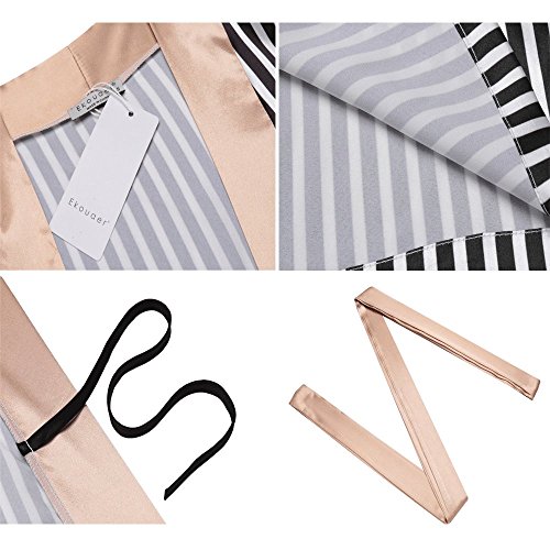 Ekouaer Women's Lace Trim Short Kimono Robe Seafolly Stripe Printed Sleepwear Nightgown Black Large