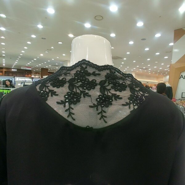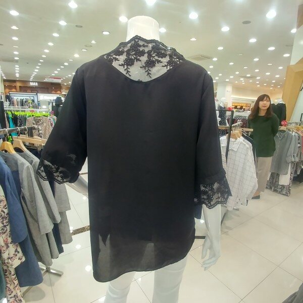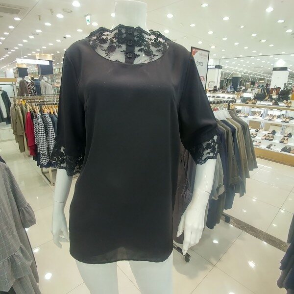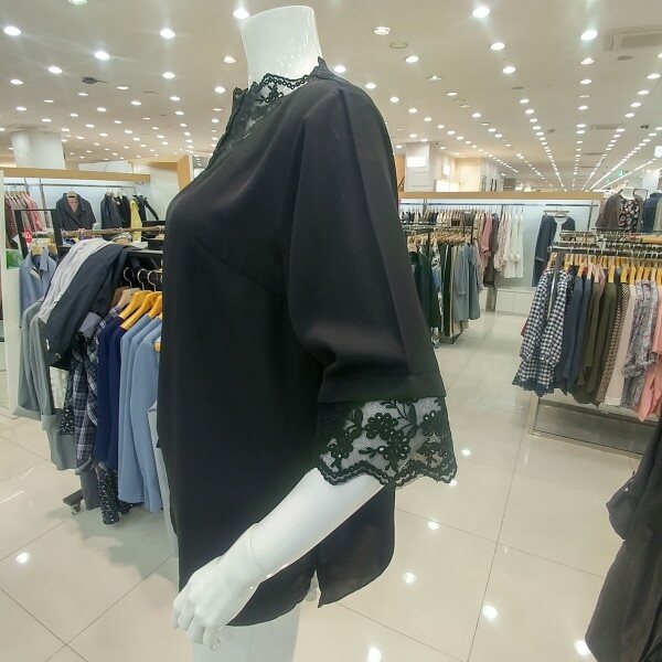 목선과 소매선에 레이스처리되어 사랑스럽고 이뻐보임