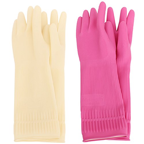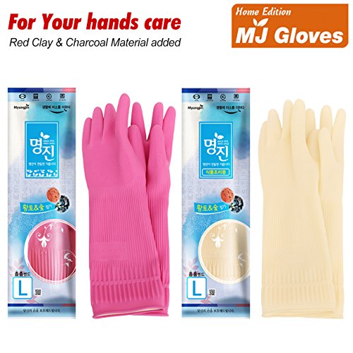 MJ 2 Pairs Household Red Clay Charcoal Rubber Latex Cleaning Wash Gloves L