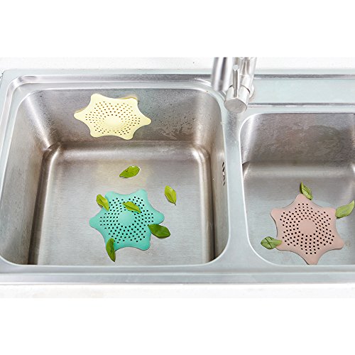 EXCEL-LEADER Shower Drain Hair Catcher Hair Stopper Drain Protector,Hexagonal Starfish Shaped Rubber Sink Strainer,4 Pack