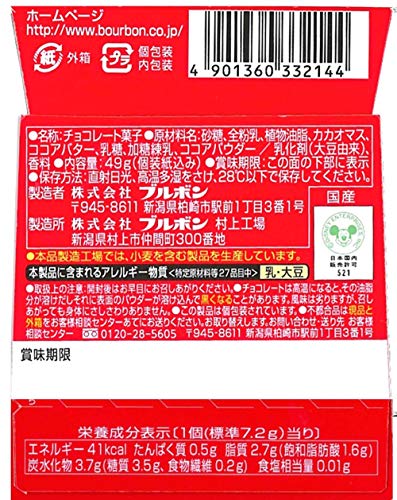 原材料:砂糖、全粉乳、植物油脂、カカオマス、ココアバター、乳糖、加糖練乳、ココアパウダー / 乳化剤(大豆由来)、香料