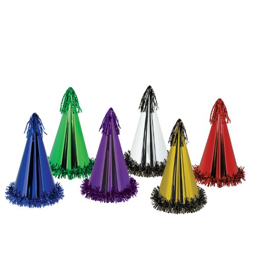 Beistle 60615-25 25-Pack Fringed Foil Party Hats, 12-1/2-Inch