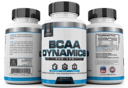 Studio : Athletic Mechanics Publisher : Athletic Mechanics Binding : Health and Beauty Product Description Branched chain amino acids or BCAAs are an important part of nutrition for athletes, bodybuilders and everyday men and women who want to gain strength and achieve their fitness goals. Athletic Mechanics BCAA Dynamics supplement is not only Non-GMO, but also provides a scientifically proven balance of these three key amino acids in a ratio that is clinically shown to provide the best results when used in fitness supplements. Our ultimate sports nutrition BCAA blend provides 1500 milligrams of l-leucine, 750 milligrams of l-isoleucine and 750 milligrams of l-valine with just one serving to make supplementing your diet simple. 0