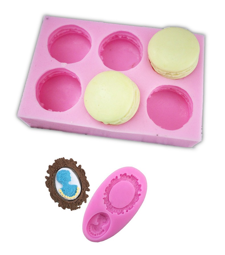 2個セット シリコンモールド 型 マカロン と チョコレート ( 肖像 と フレーム ) 手作り 石鹸 シリコン モールド 型 細工道具 8本付
