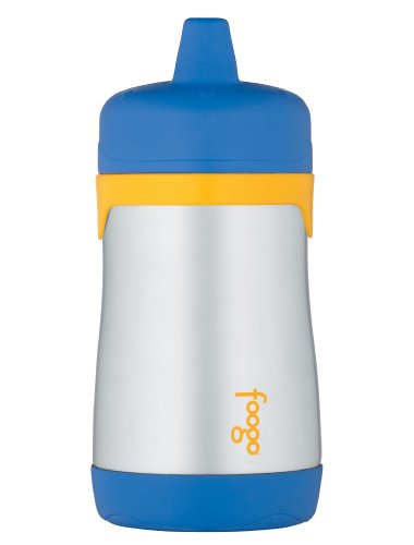 THERMOS FOOGO Vacuum Insulated Stainless Steel 10-Ounce Hard Spout Sippy Cup, Blue/Yellow