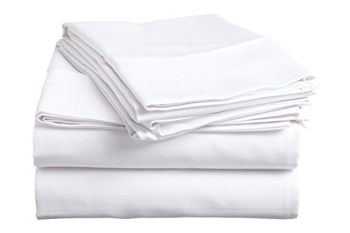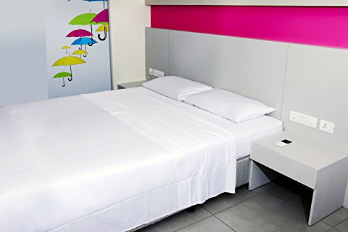 ONEFAME 300 THREAD COUNT 100% COTTON SATEEN PLAIN WHITE COLOUR SHEETSET KING SIZE (1 FLATSHEET, 1 FITTED SHEET, 2 PILLOW CASE) (King, White)