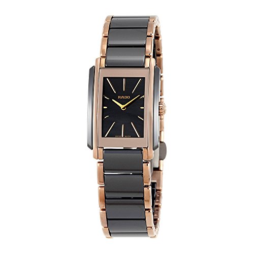 Rado Women's Gold Tone Steel Ceramic Bracelet & Case Swiss Quartz Black Dial Analog Watch R20225152