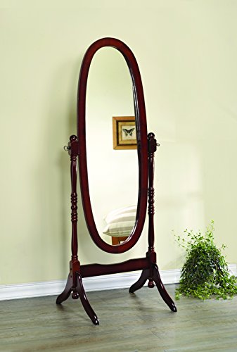 - The piece carries a warm cherry finish and features a tilting oval mirror, which allows you to obtain the angle you need